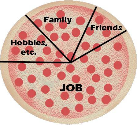 The other slices like Family, Friends or Hobbies are different for each person, and usually change as we go through our lives, but the "JOB" slice stays about the same, 60%, all the way through...